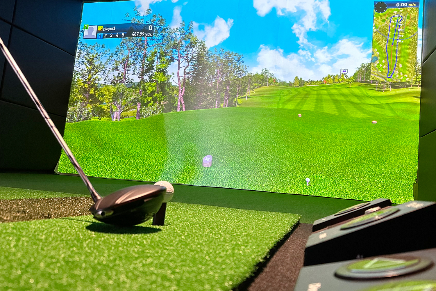 大画面のシミュレーションゴルフはまるで本物のコースを回っているかのようです。お友達やお知り合いの方と、楽しめるのも本物のゴルフコースと同様です。