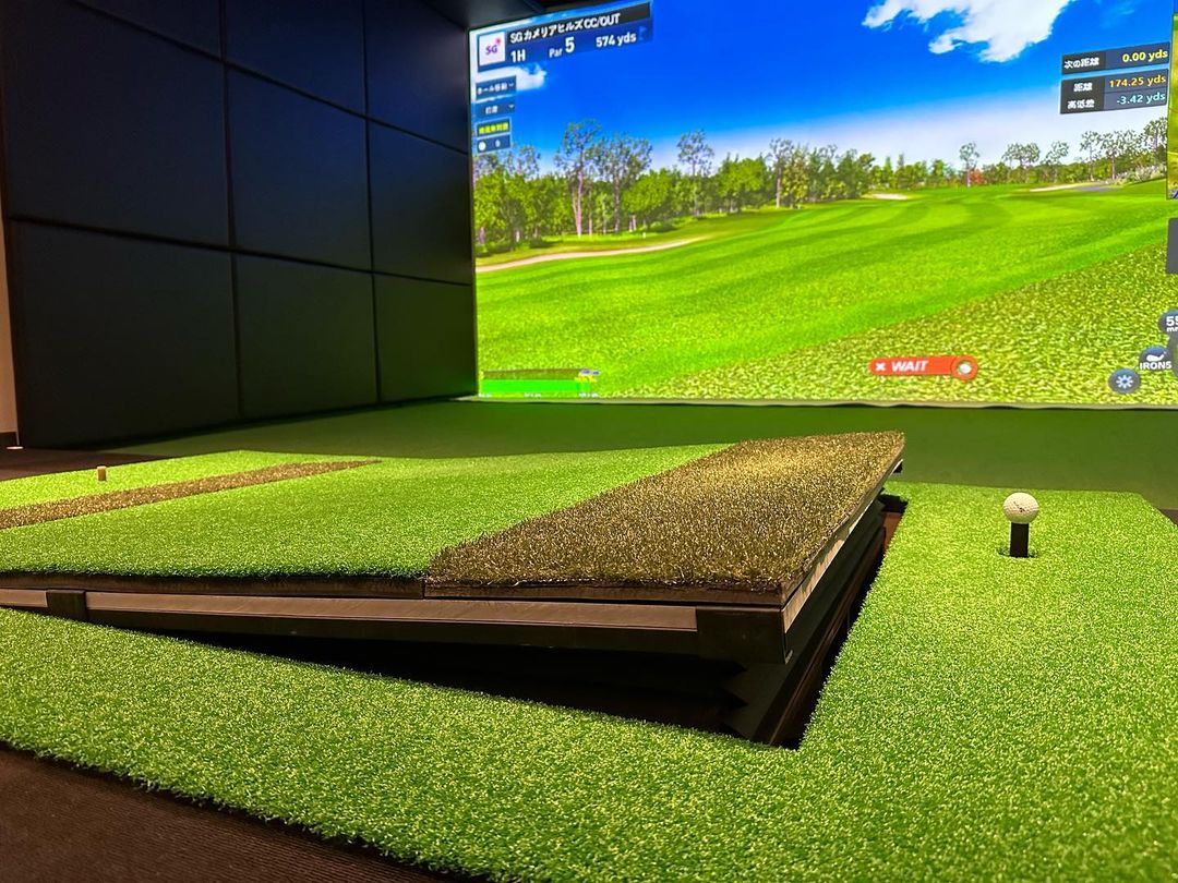 モニターでお子様が動画を見られてる中、ご主人様はシミュレーターでゴルフの練習。