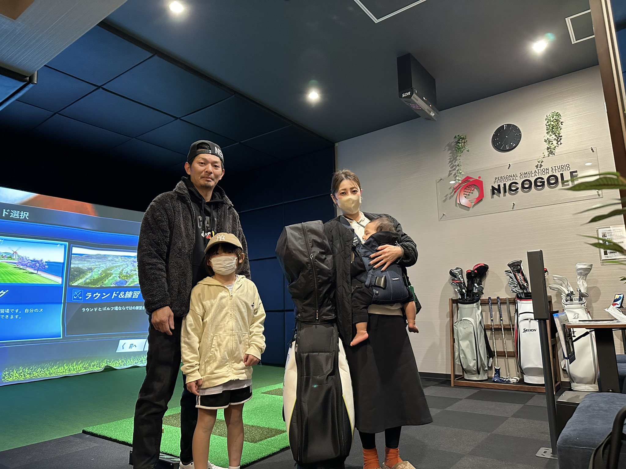 他のシミュレーションゴルフバーに通っておられたようですが、家の近くで検索されてニコゴルフを発見されました!そのまま即入会し初回ご来店時にお写真お願いして取らせていただきました!お子様も楽しんでいただけたようで何よりです!